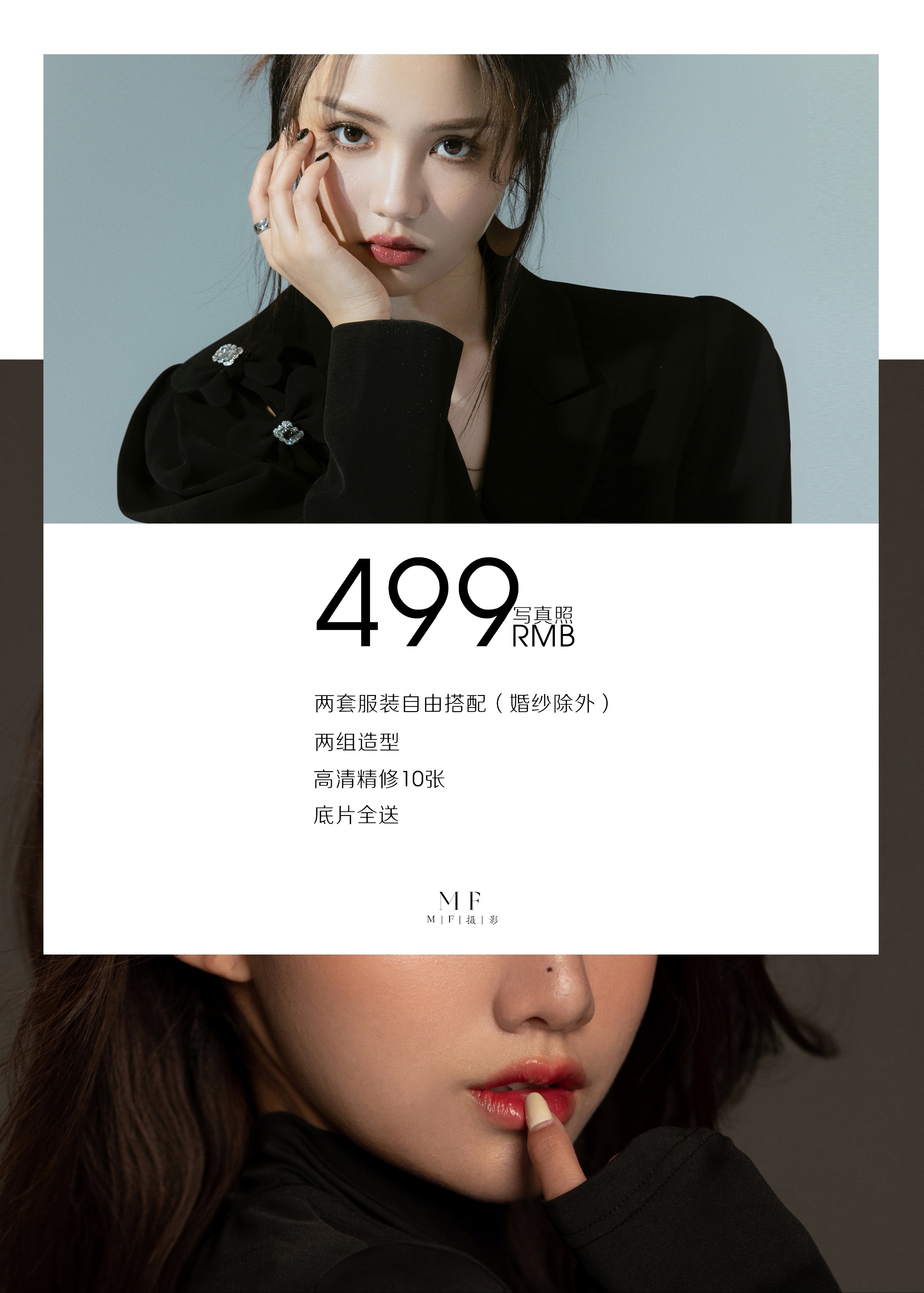 3.近视的客人请尽量不要带有边框的眼镜,可以佩戴美瞳或隐形眼镜,更可以提高上镜度。